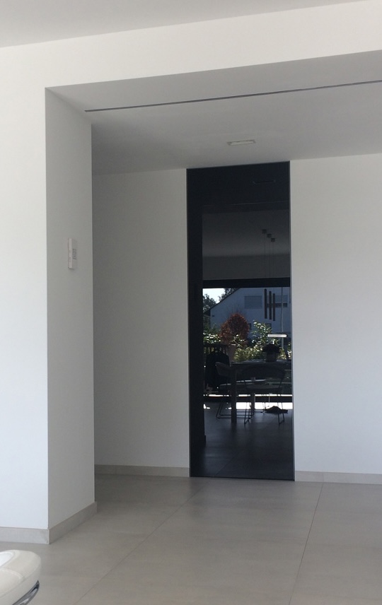 Glasdeck-Tapetentüren, bündig in Wandflächen integriert und invers öffnend, betonen die ruhige Linienführung. Das Schalterprogramm wurde bewusst schlicht gewählt – kein KNX, keine übertechnisierte Steuerung. Der Fokus liegt auf Funktion, Haptik und Langlebigkeit statt auf Spielereien.